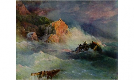 Картина И.К. Айвазовского «Кораблекрушение» дает представление о крушении, подобно которому потерпел А.А.Баранов на пути к острову Кадьяк