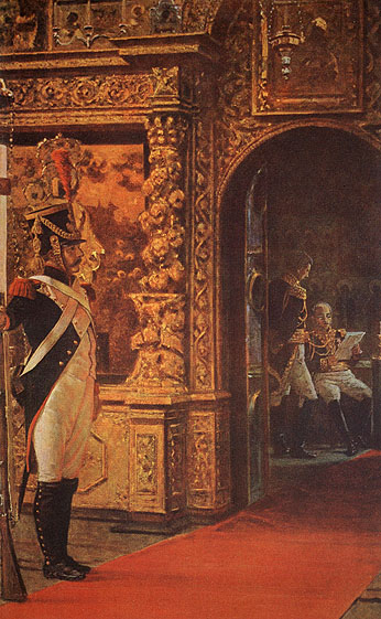 Глядя вслед вальяжным европейским туристам, я думал, как два века назад ревностный католик Даву ежедневно покидая Годуновские палаты, неторопливо направлялся в окутанный кармазинным маревом Кремль, к алтарю Чудова монастыря, в котором князь Экмюльский устроил себе кощунственное спальное ложе. Какие сны видел Даву?...