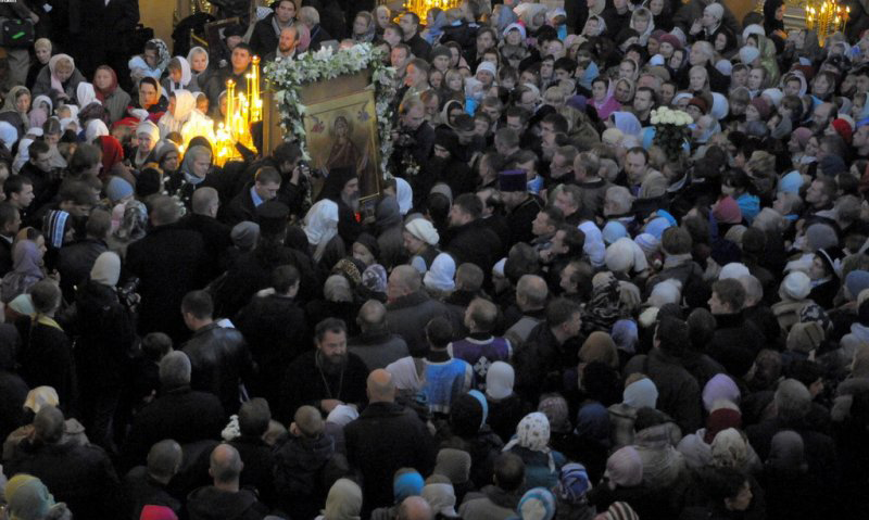 Путешествие пояса Пресвятой Богородицы городам и весям России стало именно таким событием. Его специально не ждали, но оно явилось самым желанным и востребованным на фоне суетливых предвыборных «мероприятий». Его не превозносили в официальных СМИ, но о нем так или иначе знал или узнал каждый россиянин. За него не агитировали бойкие партийцы, однако миллионы людей, не считаясь ни с личным временем, ни с погодными тяготами, выстраивались в длиннющие очереди, чтобы совершить своей малый духовный подвиг и хотя бы на миг прикоснуться к заветному ковчежку.